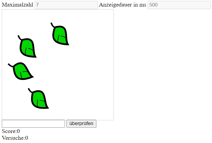 Mit der Blitzblick-App das schnelle Erfassen von unstrukturierten Mengen in selbst gewähltem Schwierigkeitsgrad üben.