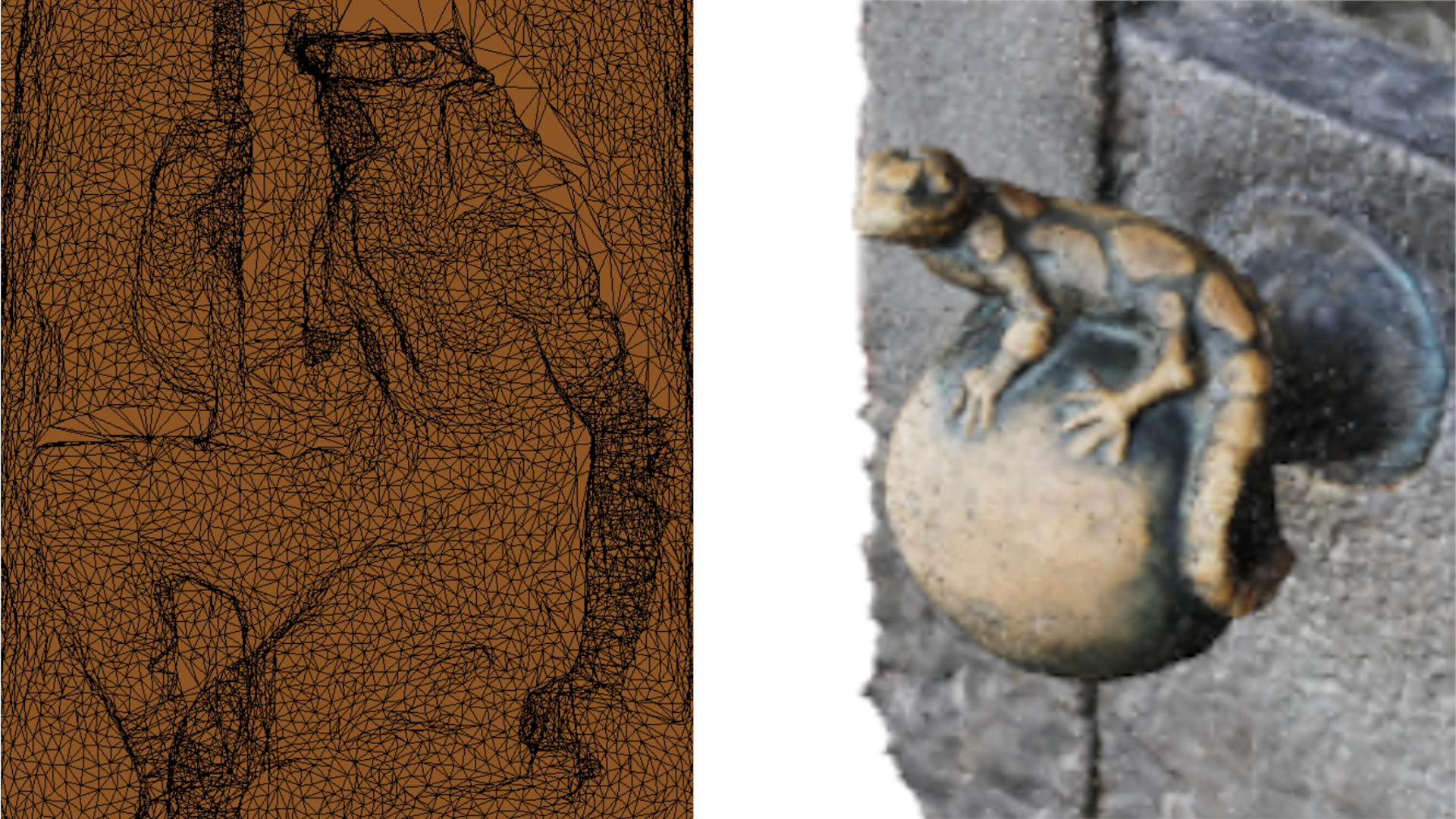 Mit der Technik der Photogrammetrie aus Fotos erstellte 3D-Modelle sehen: Moenus, Schloss Herrnsheim, Feuersalamander-Türknauf, Schloss Heidelberg.